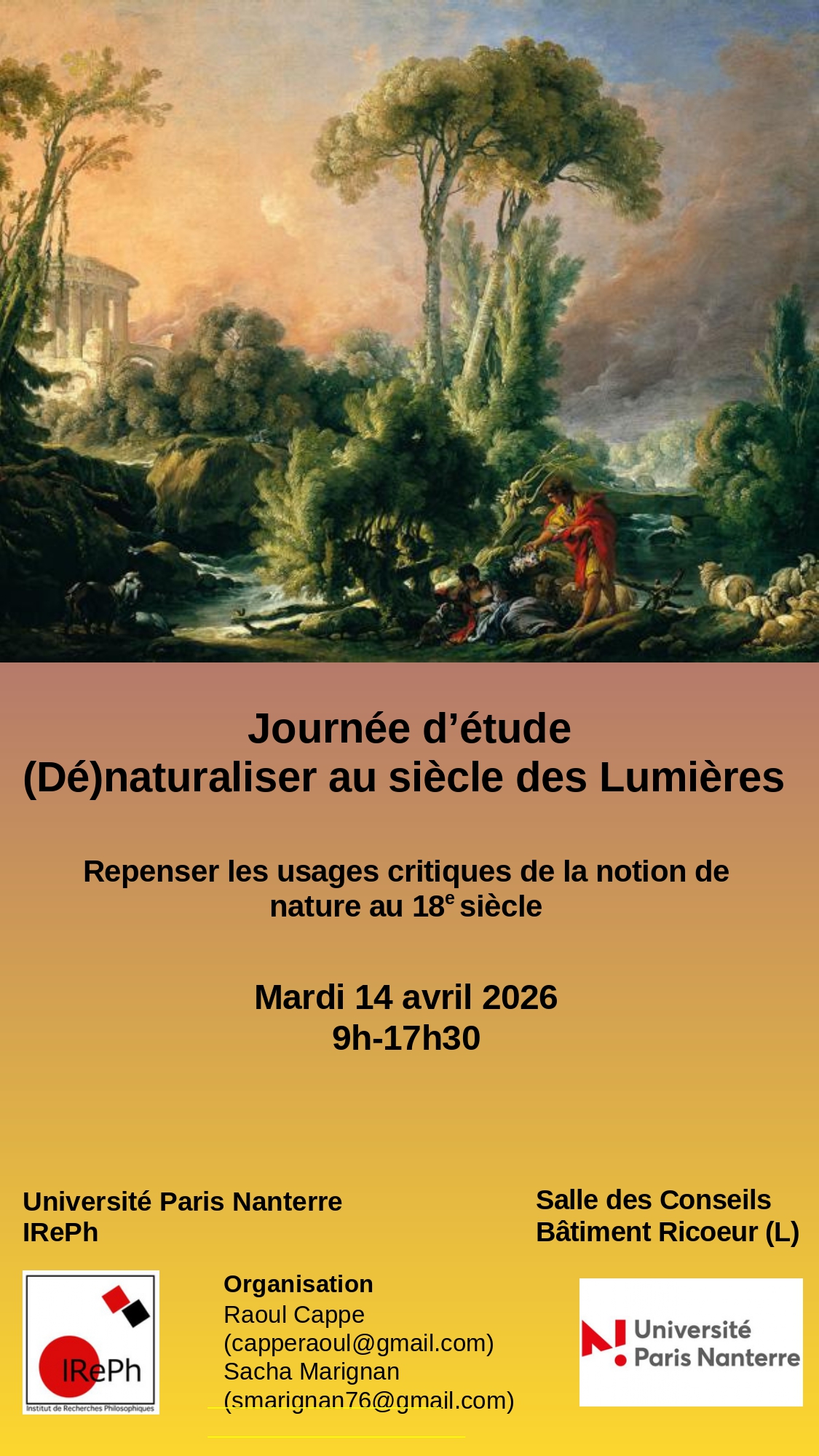 L’objectif de cette journée d’étude doctorale est de proposer une relecture de la pensée des Lumières par un retour à la pluralité des usages du concept de nature, leurs portée « naturalisante » ou « dénaturalisante » dans les savoirs et les pratiques au sens large (la politique, l’histoire naturelle, l’esthétique, le langage, la médecine, l’économie…). A l’heure où l’héritage de la philosophie des Lumières est discuté et réexaminé au prisme des questionnements politiques et sociaux contemporains (féminisme, décolonialisme, écologie, antispécisme, etc.), notamment à travers des discours qui s’attachent à la dénoncer ou à la réhabiliter dans des logiques très diverses et contradictoires, il est apparu que le concept de naturalisme pouvait constituer une voie d’accès privilégiée dans la pensée du dix-huitième siècle. Il peut d’une part nous aider à en cerner les spécificités, mais aussi à en présenter une image éloignée des caricatures qui tendent à effacer des divergences profondes existant entre les penseurs et penseuses de ce siècle.