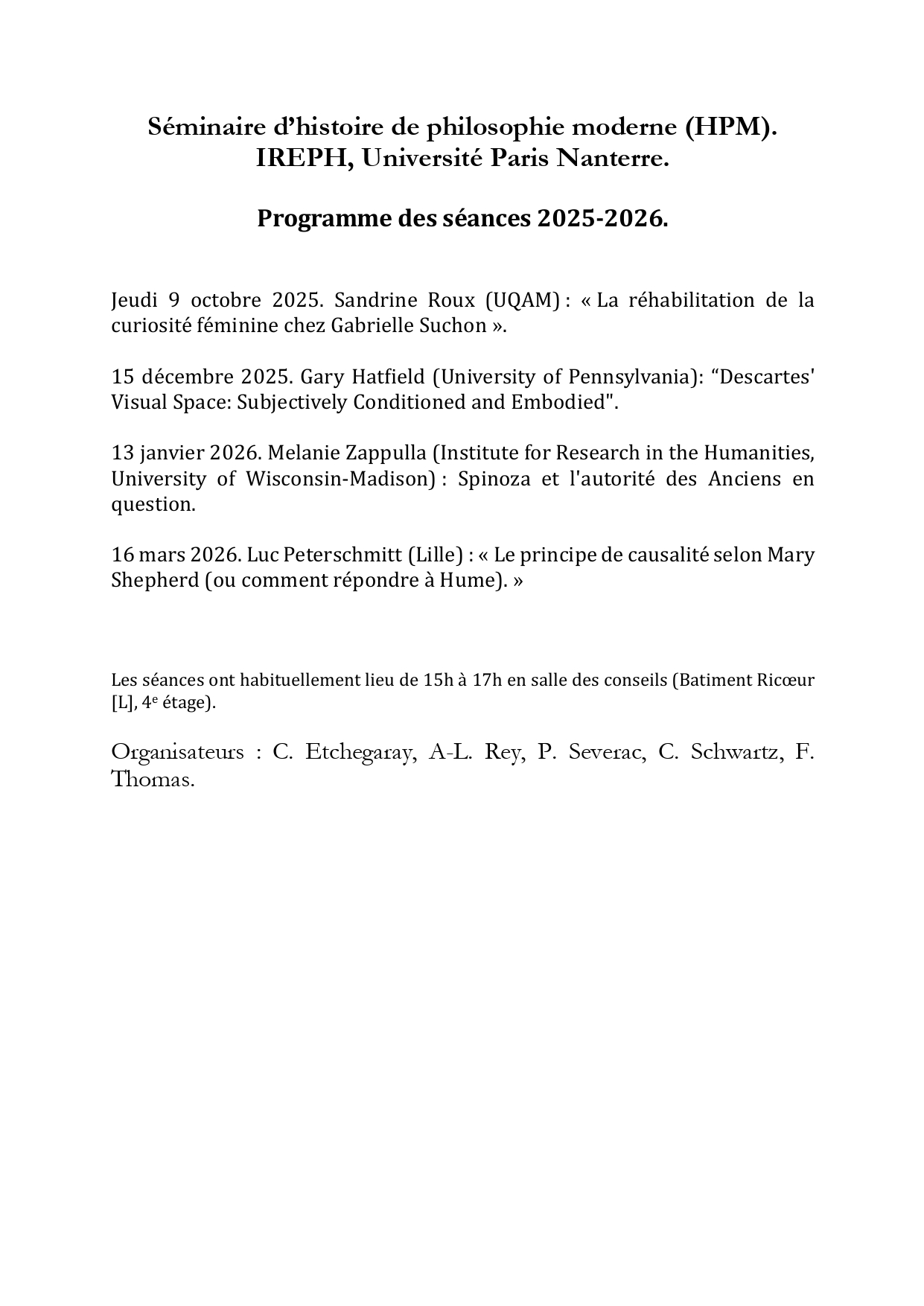 Séminaire Histoire de la Philosophie Moderne (HPM) 2025-2026